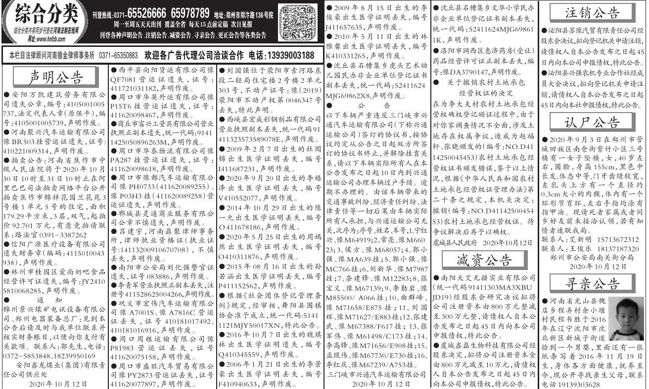 2020-10-12 第07版:公 告