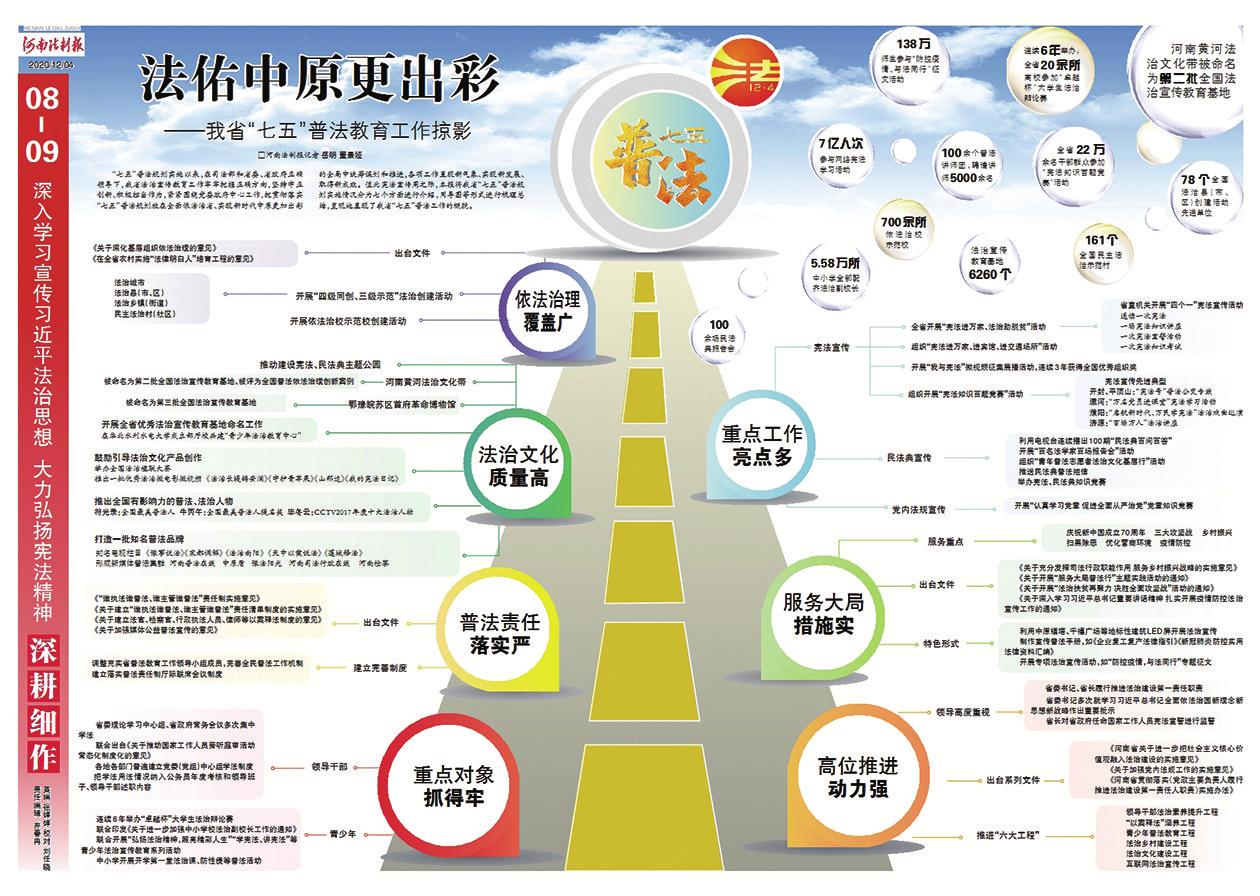 5.58万所中小学配齐法治副校长;7亿人次参与网络宪法学习活动;法治宣传教育基地6260个……