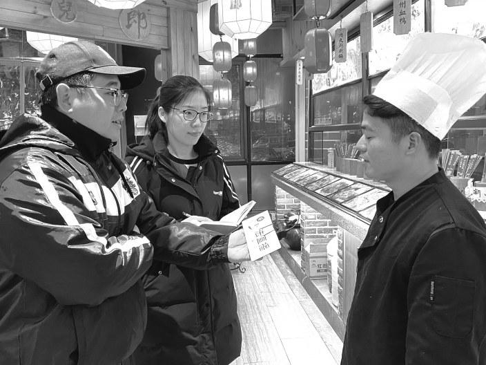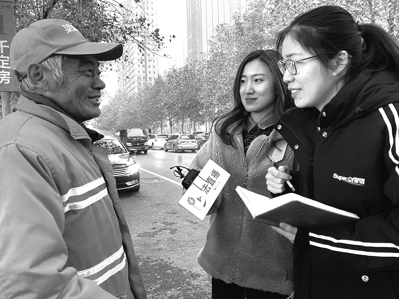 |  | | | 河南法制报记者采访环卫工人 |  | | | 河南法制报记者采访餐厅工作人员 |