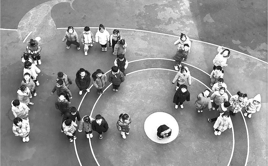 ▲昨日,郑州市二七区建新街幼儿园杏园路园开展国家宪法日主题教育活动,小朋友们摆出“12·4”字样,迎接国家宪法日。该园通过做游戏、讲故事等方式,将法治教育融入幼儿日常活动。