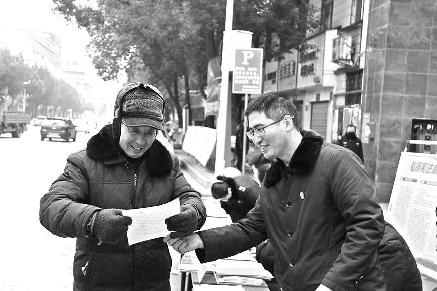 ▲12月4日,南召县法院组织干警参与“12·4”国家宪法日宣传一条街活动。