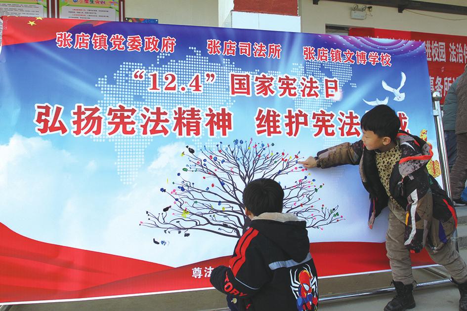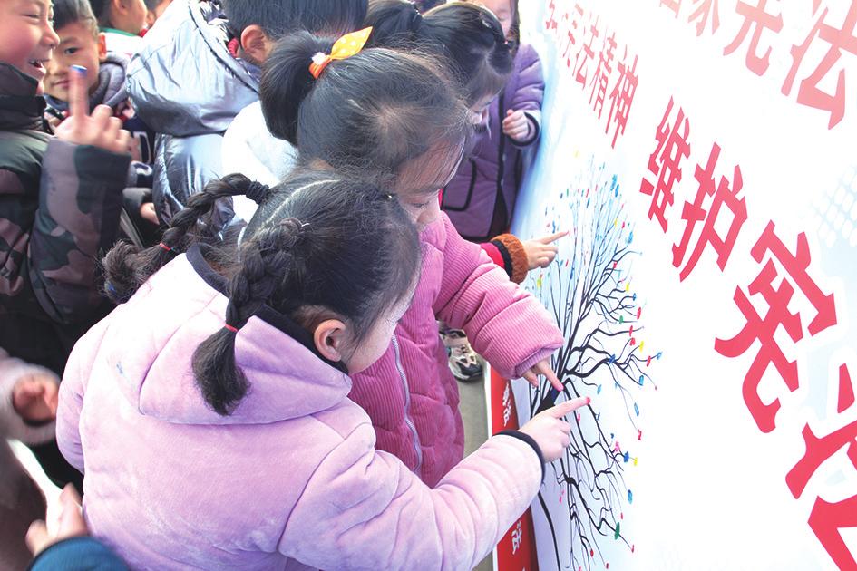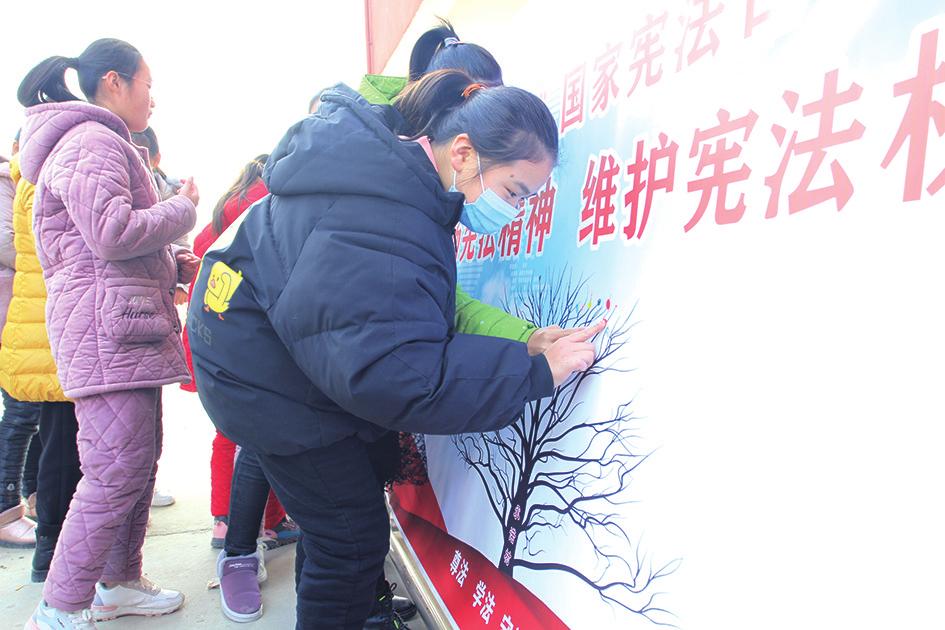为贯彻落实习近平总书记关于宪法学习宣传教育的系列重要指示精神,教育引导广大青少年学习宪法、尊崇宪法、遵守宪法、维护宪法、运用宪法,12月4日上午,在第七个国家宪法日来临之际,鹿邑县张店司法所联合张店镇政府、鹿邑县纳贤律师事务所,走进张店镇文博学校,开展主题为“送宪进校园法治伴我行”的校园法治宣传教育活动。 一次宣誓种下宪法的种子 莘莘学子意,拳拳爱国心。活动开始前,伴随着庄严的国歌,五星红旗冉冉升起。全校1000多名师生全体起立,高唱国歌,并面向国旗郑重宣誓:“忠于中华人民共和国宪法,学习宪法知识,维护宪法权威,热爱祖国、热爱人民、热爱中国共产党,努力学习,自信自强,为建设富强、民主、文明、和谐的社会主义国家努力奋斗!” 一堂法治课激发学法的兴趣 “孩子天性好奇、活泼,充满求知欲。他们在对生活的探索中,会遇到很多涉及法律的事情,可能利益被侵害而不知如何维权,也可能触碰违法犯罪的边缘而不自知。所以,帮助孩子们学法、知法、用法至关重要。”张店司法所所长刘思豪结合青少年的心理特点,梳理农村多发涉法问题类型,用通俗易懂的语言,向学生们讲解了什么是宪法、宪法与小学生的关系以及学生们应该知道的法律常识等,使他们在问与答、教与学中了解宪法,激发他们的学法兴趣,帮助他们树立正确的法治观念。 “我认为,学生学习宪法应当从自我保护开始。自我保护并非一味胆怯、退缩,而是要学会拿起法律武器保护自己。”活动中,鹿邑县纳贤律师事务所主任崔效林围绕宪法、民法典、未成年人保护法等,以“远离校园欺凌,共建平安学校”为题,以学法律、反欺凌为内容,用生动、活泼、幽默的语言为同学们上了一堂贴近生活、寓教于乐的法治教育课,并结合典型案例,从校园欺凌的概念和表现形式,校园欺凌产生的原因和影响,如何预防校园欺凌和保护自己等方面,进行了深入浅出的讲解,赢得了师生们的阵阵掌声和一致好评。 一棵“承诺树”彰显守护宪法的决心 活动中,一棵稚嫩但又坚定的“承诺树”在校园一角悄然生长。同学们纷纷走上前来,在这棵“承诺树”上按下自己的指印。不一会儿,“承诺树”已枝繁叶茂——这是孩子们对宪法许下的庄严承诺。宪法的种子在现场的每一名学生心中深埋,在法治精神的浸润下,总有一天,它会长成参天大树。 活动的最后,司法所工作人员与学校老师共同将精心准备的宪法读本、宣传彩页和调查问卷分发给在场的每一名学生。宣传资料中生动的图片和鲜活的案例,将法治教育变得更有趣味性、传播性和实用性。 据统计,此次活动共发放各类宣传资料3000余份。学生们表示:“宪法与我们的生活紧密相连。我们应该认真学习宪法,牢固树立法律意识,自觉遵守宪法;要从小事做起,从自身做起,自觉维护宪法尊严,推动宪法普及,做一名守护宪法的小卫士。” 十年树木,百年树人。枝繁叶茂的“承诺树”,意味着此次校园法治教育活动不仅将法治知识、法治精神推向了每一名学生,更推向了每一名学生背后的家庭。 2020年是“七五普法”收官之年,全民普法和守法是依法治国的长期基础性工作,法治宣传工作也非一朝一夕之功。刘思豪告诉河南法制报记者,此次校园法治宣传教育活动是张店司法所推进“法律十进”工作中的一站。在今后的工作中,张店司法所还将继续开展各类群众喜闻乐见的法治宣传活动,久久为功,将更多法律知识送进千家万户,在张店镇营造出良好的法治氛围,为构建平安鹿邑贡献张店力量。