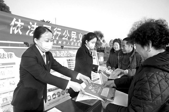 12月4日,禹州市法院在夏禹公园广场向广大市民宣传宪法,倡导大家积极学习宪法法律,争做守法、普法的表率。