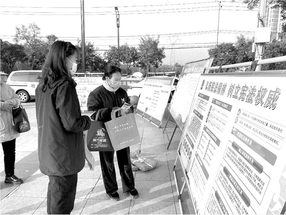 ▲近日,焦作市马村区司法局在绿园广场组织开展宪法集中宣传活动。图为群众观看宪法宣传展板。侯晓莉摄影报道