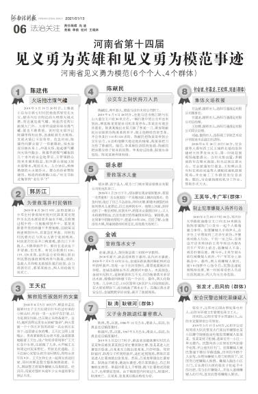 河南省第十四届见义勇为英雄和见义勇为模范事迹