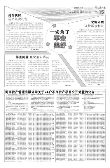 河南资产管理有限公司关于74户不良资产项目公开处置的公告(HNZCCZ-20210007)