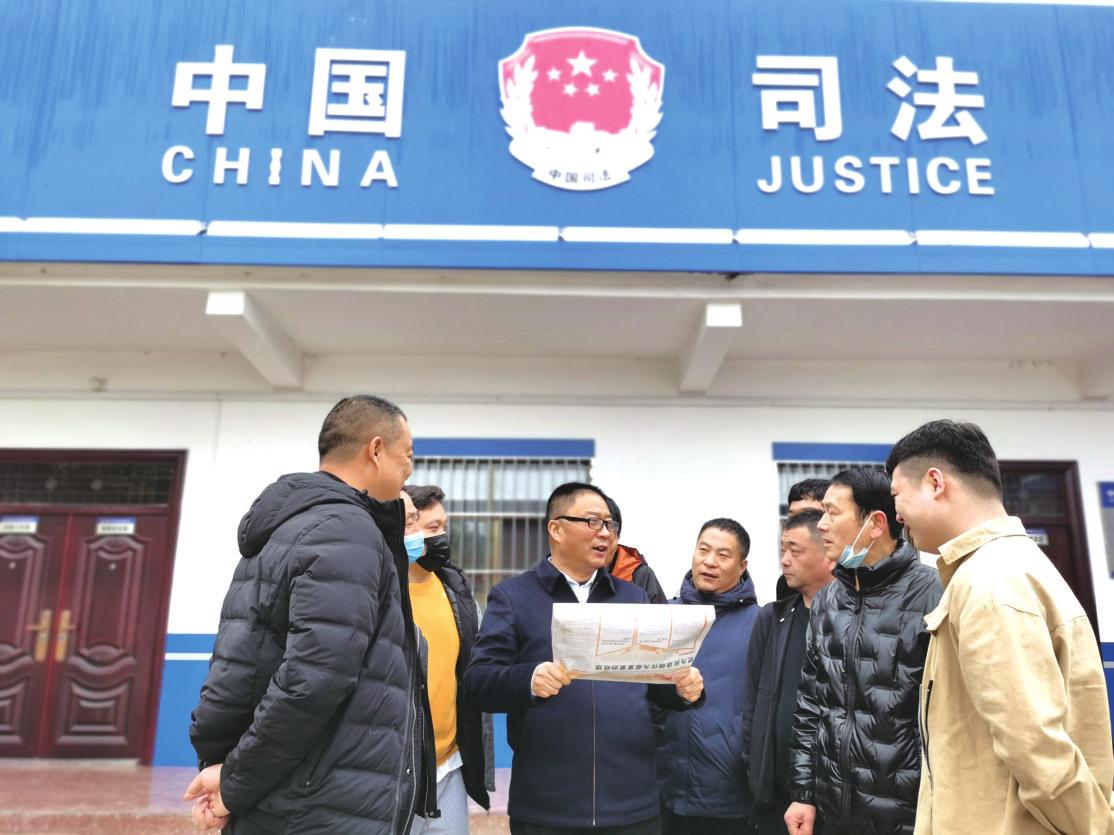 “看见没,两会上有声音了,依法治国,有理走遍天下,闹、耍无赖是没结果的。”3月12日上午,全国模范人民调解员、长葛市司法局老城司法所所长路建周向群众宣讲两会精神。