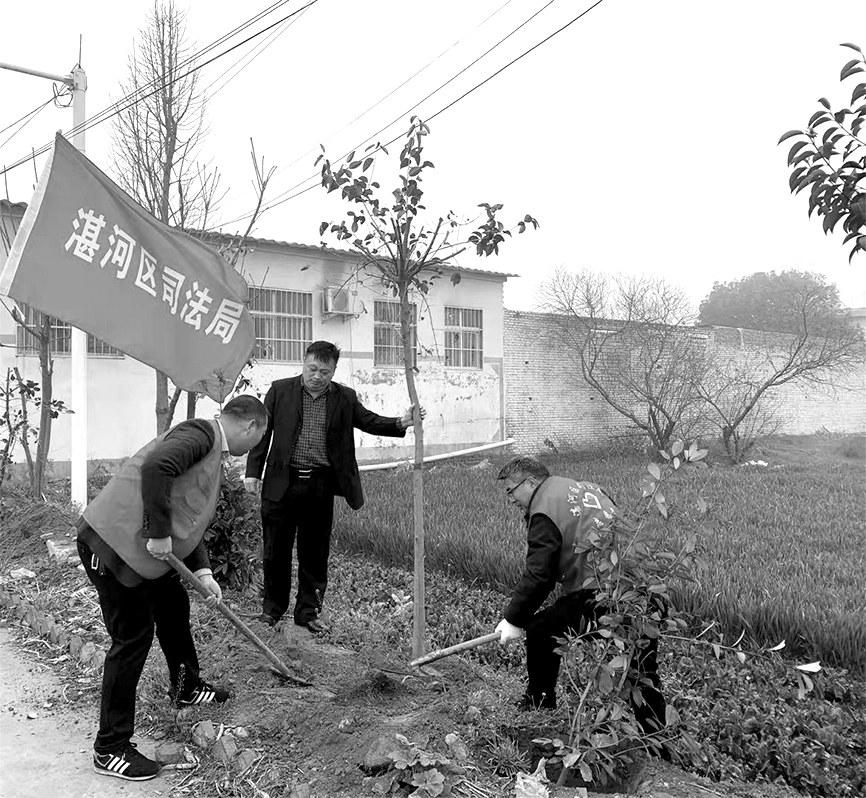 日前,平顶山市湛河区司法局组织全体干部到荆山街道卫寨村开展“我为群众办实事”爱民实践活动,为该村植树100余棵。郝纳新摄影报道