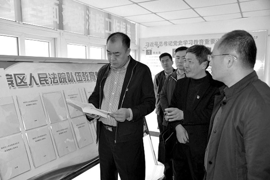 4月7日,河南省政法队伍教育整顿驻点指导组人员马利军、王文龙一行,到三门峡市湖滨区法院检查指导队伍教育整顿工作。指导组一行查看了该院学习教育日程安排、干警学习笔记、日常工作台账等,详细询问了教育整顿工作进展,随机检验了干警学习效果,并现场提出指导意见。