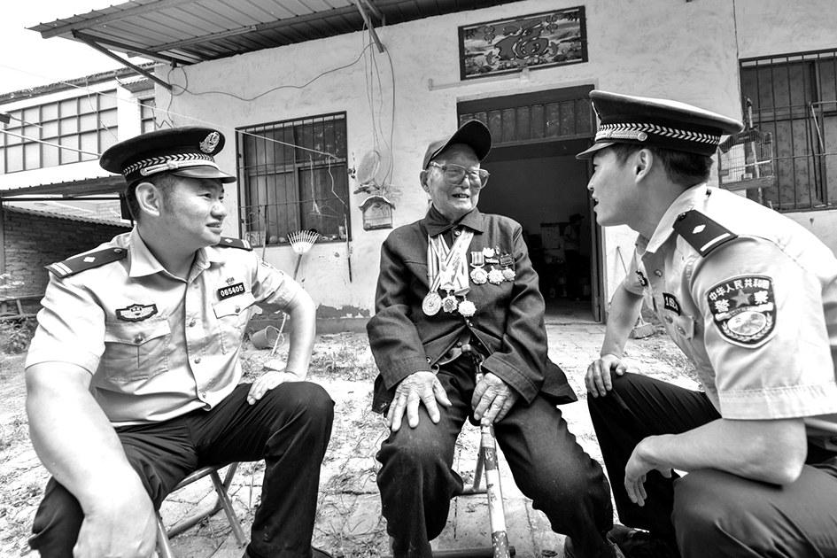 近日,睢县公安局匡城派出所民警结合“我为群众办实事”实践活动,到辖区老党员王广志家中,听老人讲红色故事,弘扬爱国主义精神。