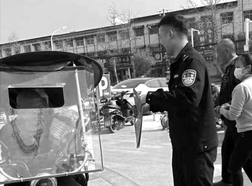 近日,封丘县公安局民警走上街头,引导群众低碳生活、绿色出行。 河南法制报记者穆黎明