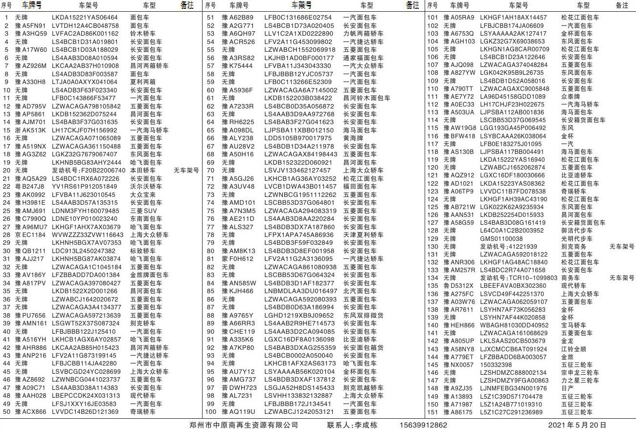 郑州市金水区丰庆路街道办事处冠军路151辆僵尸车公告