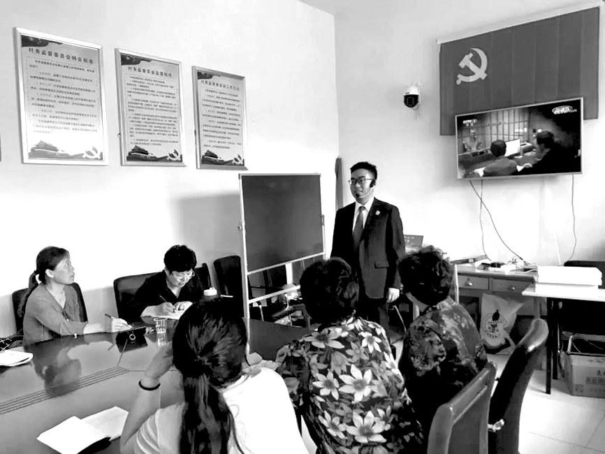 ▲为深入推进政法队伍教育整顿“我为群众办实事”实践活动,增强人民群众防范电信网络诈骗意识,近日,台前县法院组织干警前往该县孙口镇东官路村开展防范电诈宣传活动。河南法制报记者李梦扬通讯员王勇摄影报道