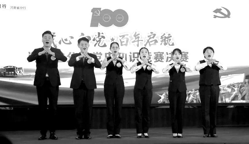 本报讯(河南法制报记者翟国明/文图)为庆祝建党100周年,追寻入党初心,汲取前进力量,激励广大青年员工学史明理、学史增信、学史崇德、学史力行,工行河南省分行举办了“我心向党百年启航”党史知识竞赛。6月9日,党史知识竞赛举行决赛。 据了解,自4月份党史知识竞赛启动以来,该行各单位高度重视,积极参与。经过前期机试初赛、现场热身赛,最终工行新乡分行等7家单位代表队进入决赛。 决赛现场,各代表队踊跃抢答,竞争激烈,表现出了较高的党史知识储备与政治理论修养。 决赛还加入了青年员工主题文艺展示环节。经过激烈的竞技角逐,最终新乡分行代表队荣获一等奖,开封分行代表队、三门峡分行代表队荣获二等奖,省行本部代表队、南阳分行代表队、驻马店分行代表队、济源分行代表队荣获三等奖。 颁奖典礼上,工行河南省分行党委书记、行长邹平向青年员工提出四个方面的期望:一是在学党史中更加爱党爱国,赓续传承共产党人的精神血脉,常怀忧党之心、为党之责、强党之志,不断增强守初心、担使命的思想自觉和行动自觉,为全行高质量经营发展而不懈奋斗;二是在悟思想中做到知行合一,坚持以习近平新时代中国特色社会主义思想武装头脑,悟思想,强信念,勇奋斗,筑牢信仰之基,补足精神之钙,从百年党史奋斗历程中汲取前行力量;三是在办实事中砥砺初心使命,以党的初心和使命解决问题,办实事、说实话、求实效,牢固树立全心全意为人民服务的宗旨意识;四是在开新局中展现青春风采,紧密团结在省行党委周围,以高度的政治责任感、过硬的素质本领,做五四精神的传承者、求新求变的先行者、加快发展的推动者,不断为全行高质量发展贡献新的智慧和力量,在开新局中绽放耀眼的青春风采。 不忘初心,牢记使命;我心向党,百年启航。工行河南省分行将持续深入推动党史学习教育,牢牢把握正确前进方向,砥砺前行,不断开创高质量发展的新篇章。