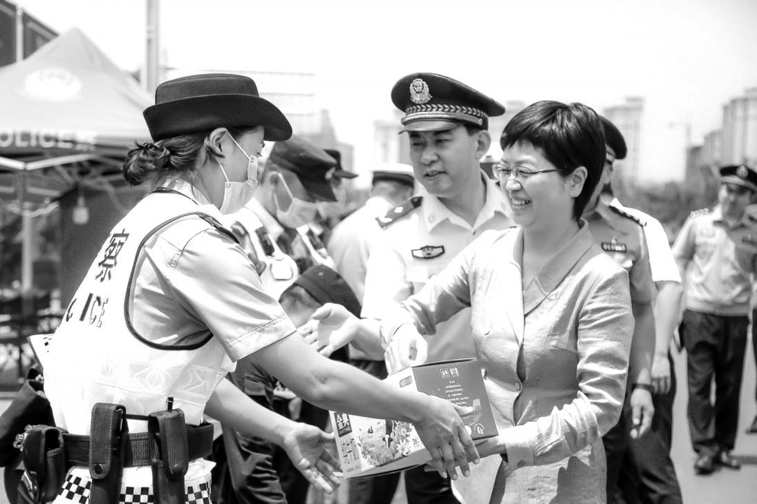 6月28日,新密市委书记陈春梅先后到新密东收费站卡点、青屏剧院执勤点等处,检查全市公安机关庆祝建党100周年安保维稳工作,看望慰问坚守岗位的执勤民警、辅警。河南法制报记者王晓磊