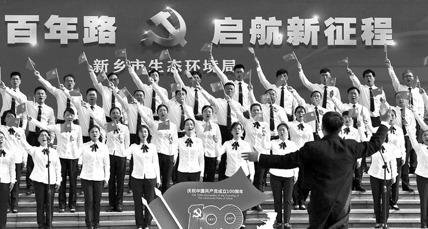 日前,为庆祝中国共产党成立100周年,新乡市生态环境局组织全市生态环境系统干部职工开展红色歌曲暨环保歌曲传唱活动,展现他们昂扬向上的精神风貌,激励大家在今后工作中扛起新担当、展现新作为、作出新贡献。 唐金江摄影报道