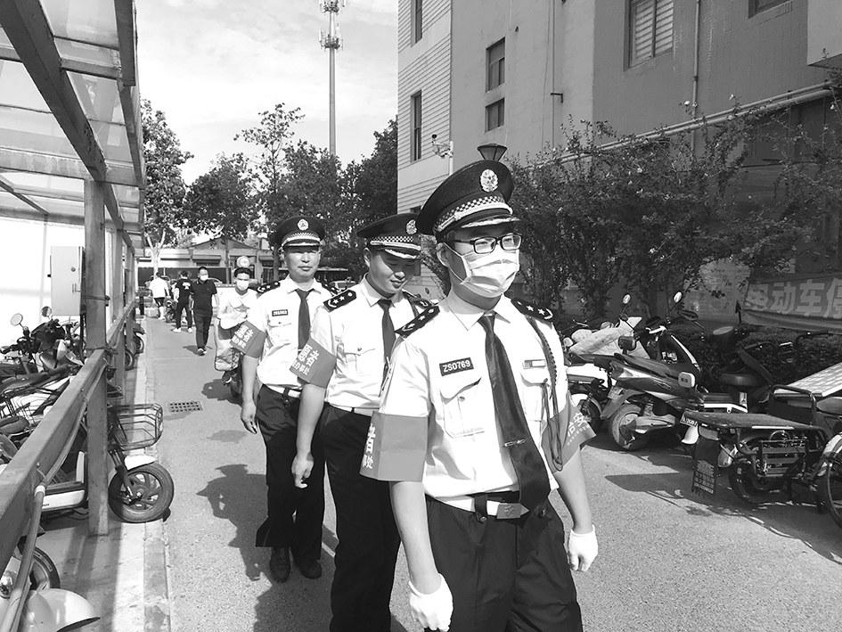 近段时间以来,郑州市管城区委政法委有效整合各种社会资源,建立健全群防群治工作运行机制,深入开展群防群治工作,确保辖区社会大局持续可控、和谐稳定。图为平安志愿者在街道巡逻。