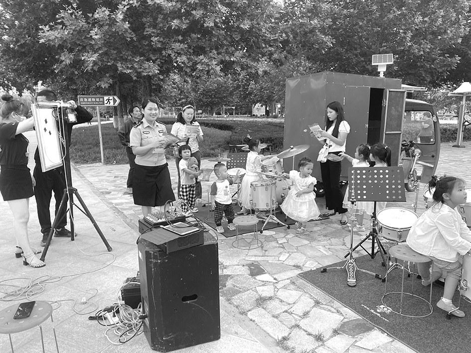 近日,封丘县公安局刑侦大队组织民警走进幼儿演出场地,给孩子们讲解防拐骗知识,增强孩子们自我保护意识,以实际行动推进教育整顿开展。河南法制报记者穆黎明通讯员进昌摄影报道