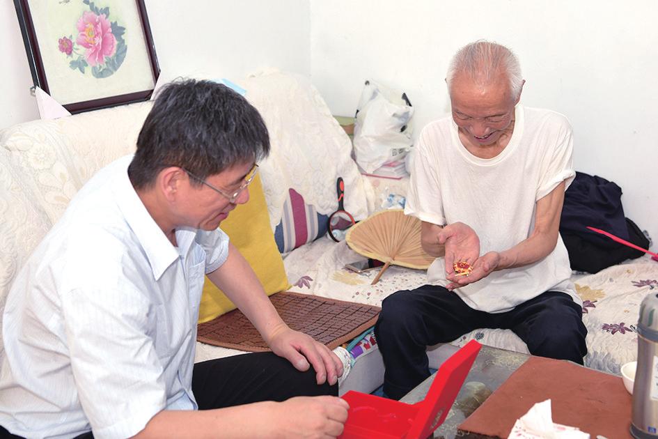 近日,唐河县法院机关党委为16位有50年以上党龄的老党员颁发“光荣在党50年”纪念章。图为唐河县法院党组书记、院长王云鹏来到退休干部王同发家中,为他颁发“光荣在党50年”纪念章。河南法制报记者王海锋实习记者刘震通讯员谢丛晨摄影报道
