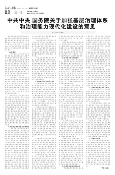 中共中央国务院关于加强基层治理体系和治理能力现代化建设的意见