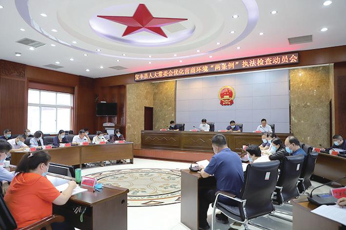 ▲近日,宝丰县人大常委会召开优化营商环境“两条例”执法检查动员会,推进“两条例”全面有效实施。庄海燕摄影报道