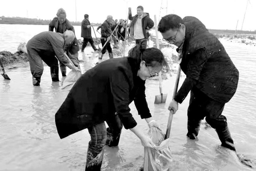 近日,淇县普降大到暴雨,水位已超预警线。该县纪检监察干部主动履职尽责,积极参与防汛救灾。图为该县西岗镇纪检监察干部与群众一起在思德河封堵决口。 高建玮摄影报道