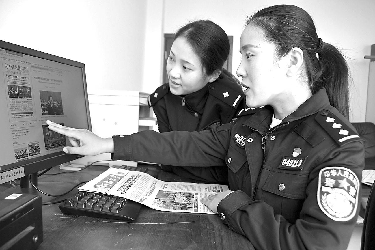 10月27日,浚县公安局组织党员民警在工作岗位上利用报纸、网络等平台,学习领会中国共产党河南省第十一次代表大会精神。