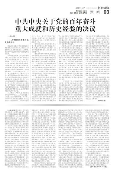 中共中央关于党的百年奋斗重大成就和历史经验的决议