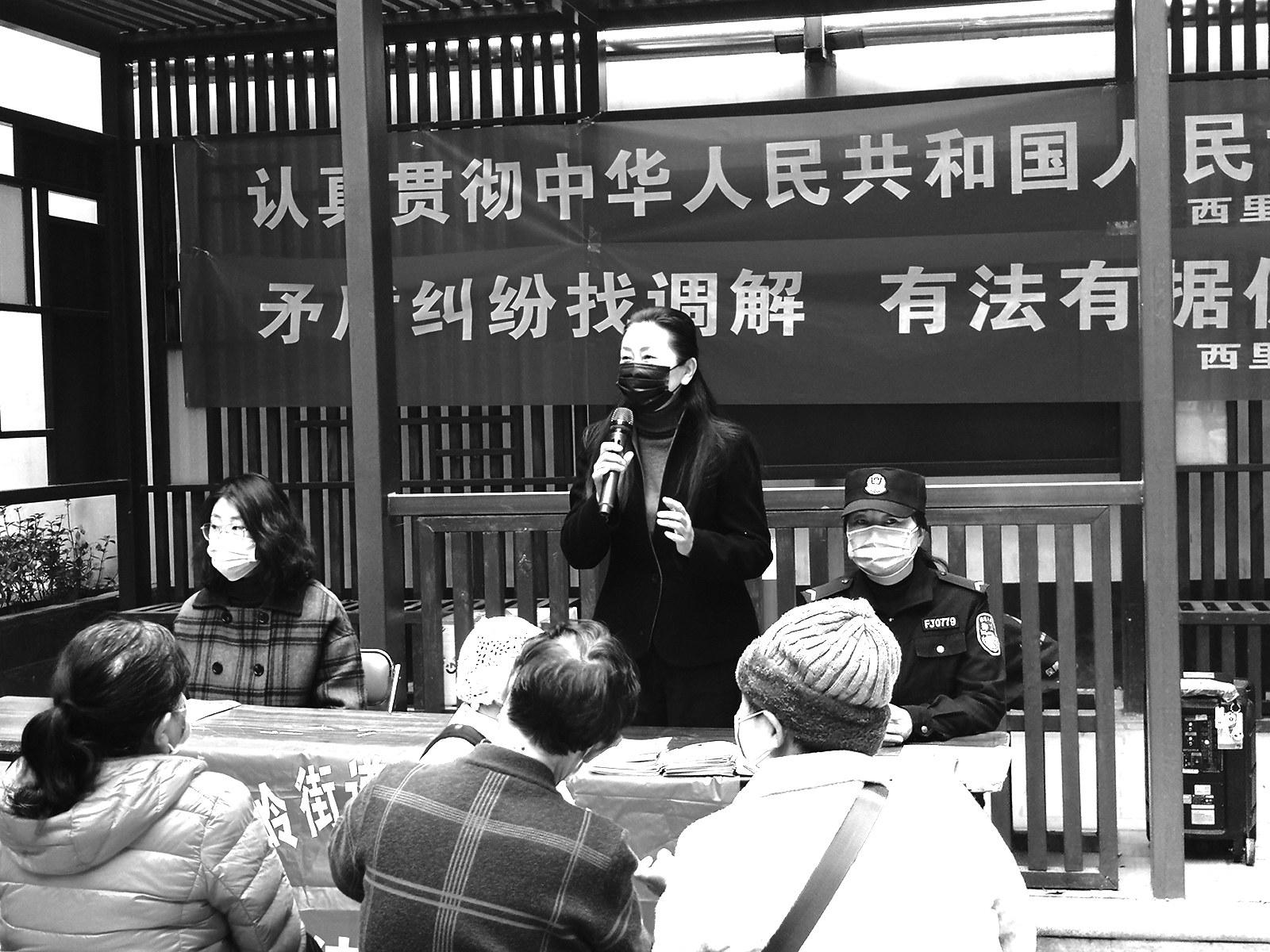 近日,郑州市金水区司法局杜岭司法所邀请河南电视台《百姓调解》栏目调解员、律师和社区民警为社区居民上了一堂生动的法治课。据介绍,该所成立“睦邻调解队”,及时发现和化解社区邻里之间的矛盾纠纷,让邻里矛盾小问题不出楼院,大问题不出社区就能解决,将居民矛盾纠纷化解在萌芽状态。河南法制报记者王晓磊通讯员张靓娴摄影报道