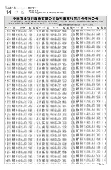 中国农业银行股份有限公司新密市支行信用卡催收公告
