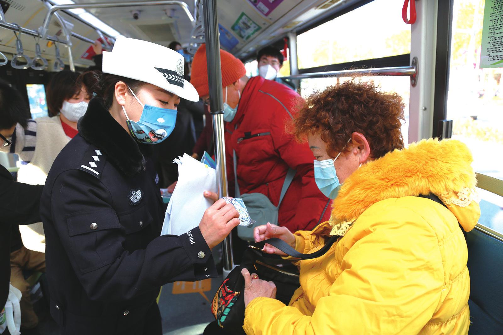 ▲12月1日上午,郑州市公安局交警支队联合郑州市公交四公司,开展了移动式交通安全宣传活动。除了移动宣传车外,郑州市公安局交警支队还在市区多个位置设置了宣传活动点。 贾伟 摄