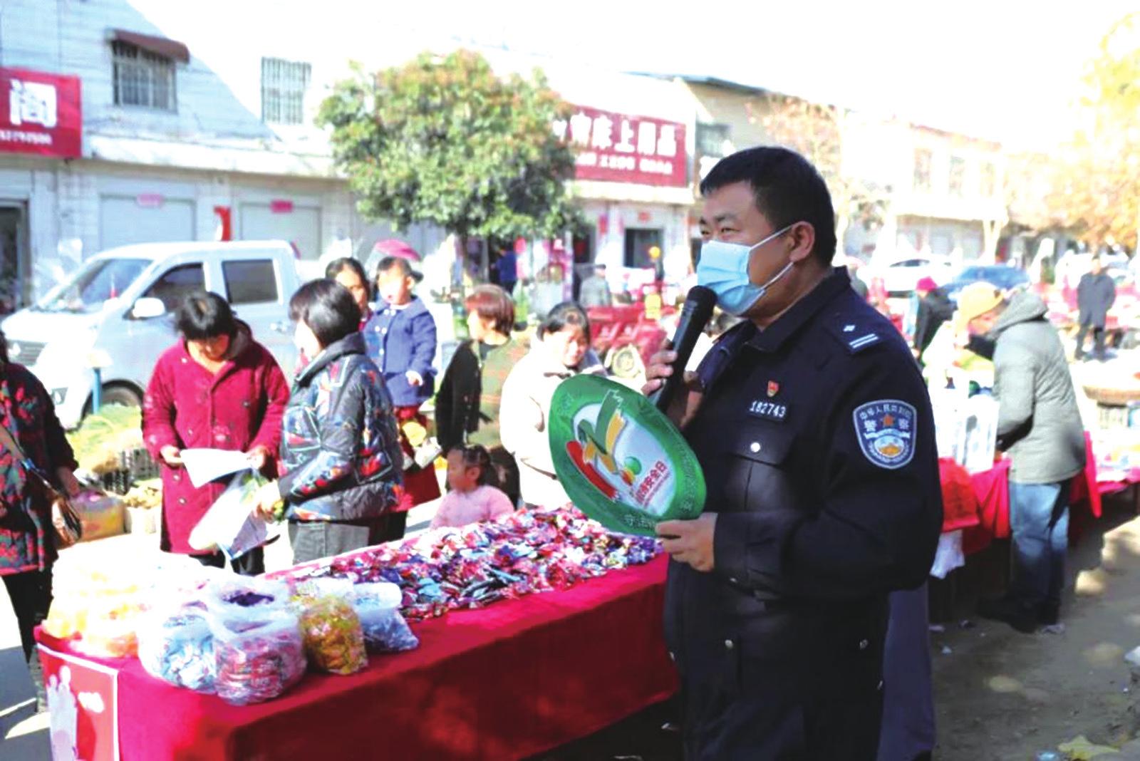 ▲12月1日,桐柏县公安局交警大队民警走进客运联营站、乡镇集市等处,宣传交通安全知识。肖书鼎摄
