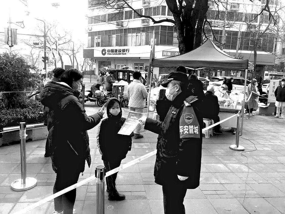 为推进辖区“三零”创建工作落地落实,郑州市管城区西大街街道办事处联合多部门建立常态化机制,持续在辖区开展“防范电信网络诈骗”宣传活动,遏制电信网络诈骗犯罪高发的态势,减少居民群众的财产损失。图为1月9日该办事处在辖区核酸检测点向群众宣传下载国家反诈中心App。河南法制报记者王晓磊通讯员唐卫卫摄影报道