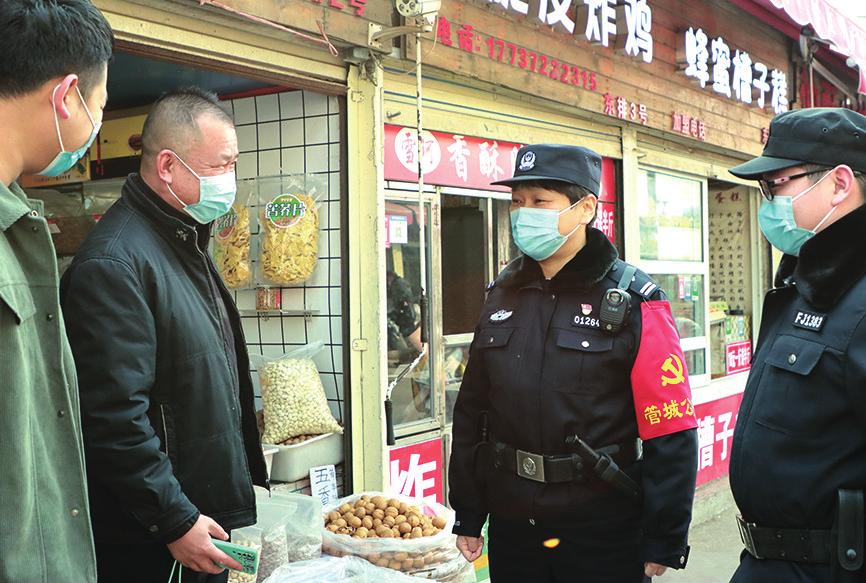 ▲2月25日,郑州市公安局管城分局女民警陈军荣在陇海市场巡逻,询问商户经营情况。
