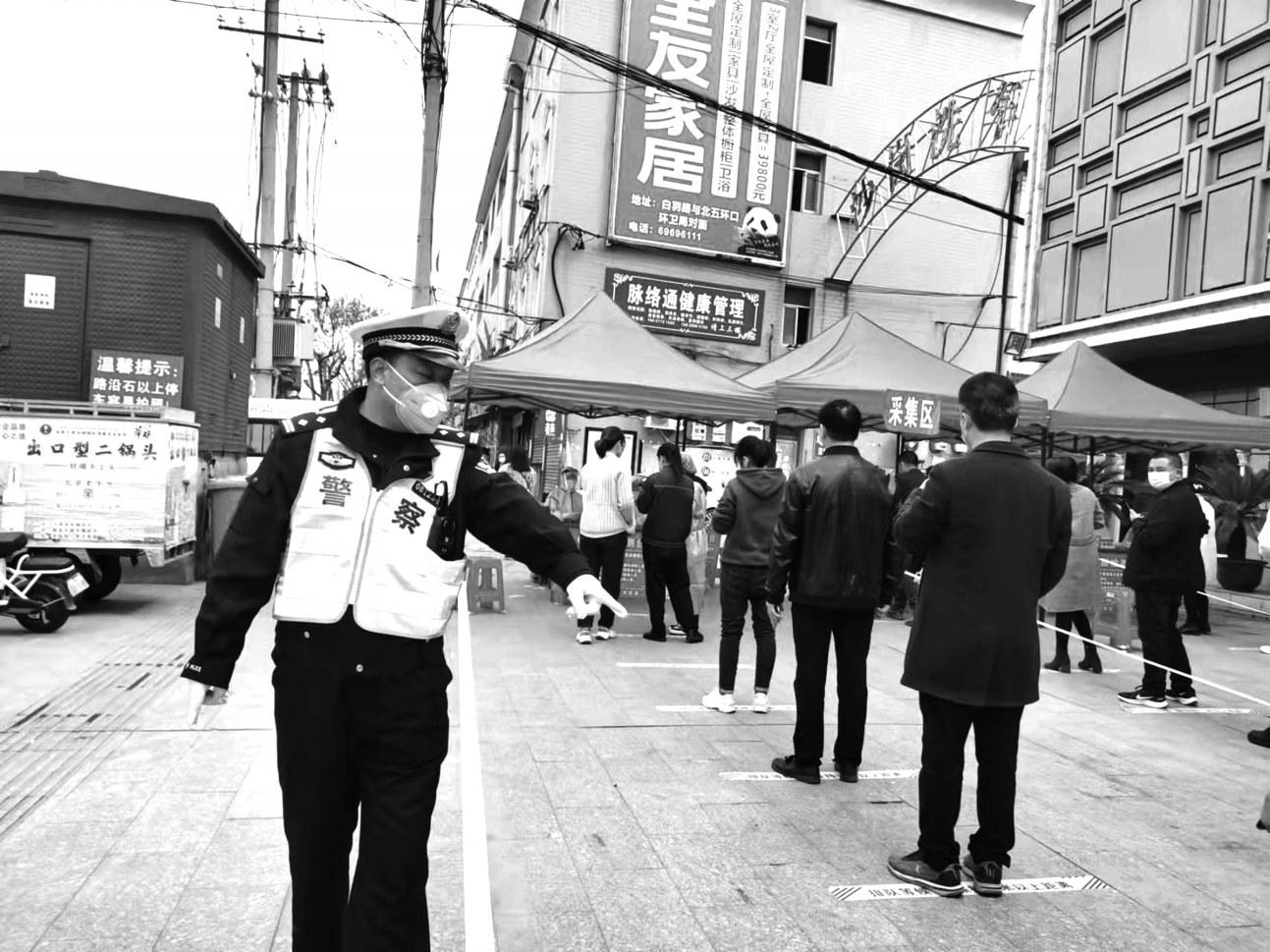 3月27日,西峡县城区、五里桥区域开展全民核酸检测工作,西峡县公安局组织民警、辅警现场维持秩序,提醒广大群众保持一米距离,佩戴口罩,有序参加核酸检测。