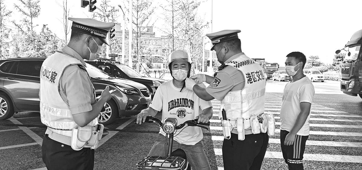 近日,郑州市公安局航空港实验区分局开展“一盔一带”专项行动,对骑电动车不戴头盔、车上驾乘人员不系安全带等交通违法行为进行集中整治,用“重教育轻处罚”的方式,切实增强群众的安全意识。河南法制报记者王晓磊路梦蝶通讯员孟嘟嘟摄影报道