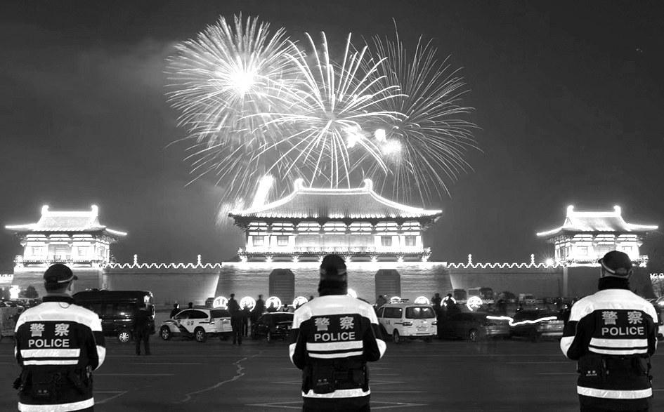 春节期间,洛阳举办新春焰火晚会,洛阳公安机关出动4000名安保力量,全力保障焰火燃放现场安全有序。常向阳席林燕南摄