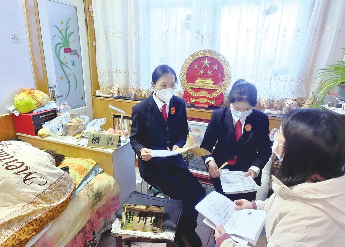 在得知案件当事人苗某某因患病行动不便,无法到法院开庭的情况后,1月28日,卢氏县法院综合审判团队办案法官来到苗某某家中,在其病床前开庭审理一起民事纠纷案。