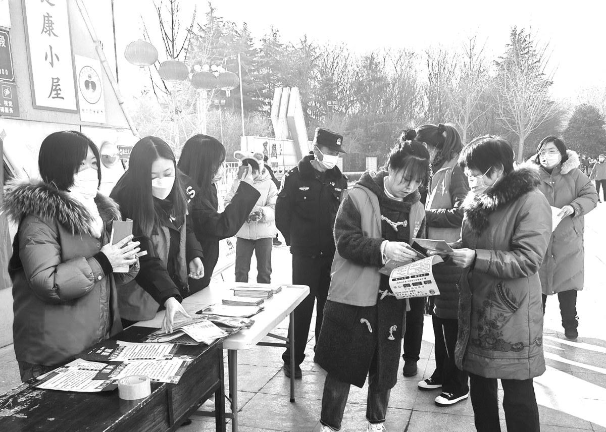 1月30日,安阳市文峰区永明路街道办事处联合司法所、社区警务室在易园开展“三零”平安创建集中宣传活动。志愿者帮助群众下载注册“国家反诈中心”App,进一步增强群众的反诈意识。
