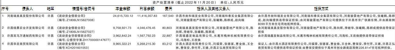 河南资产管理有限公司关于河南瑞美真发股份有限公司等4户债权公开处置公告 |