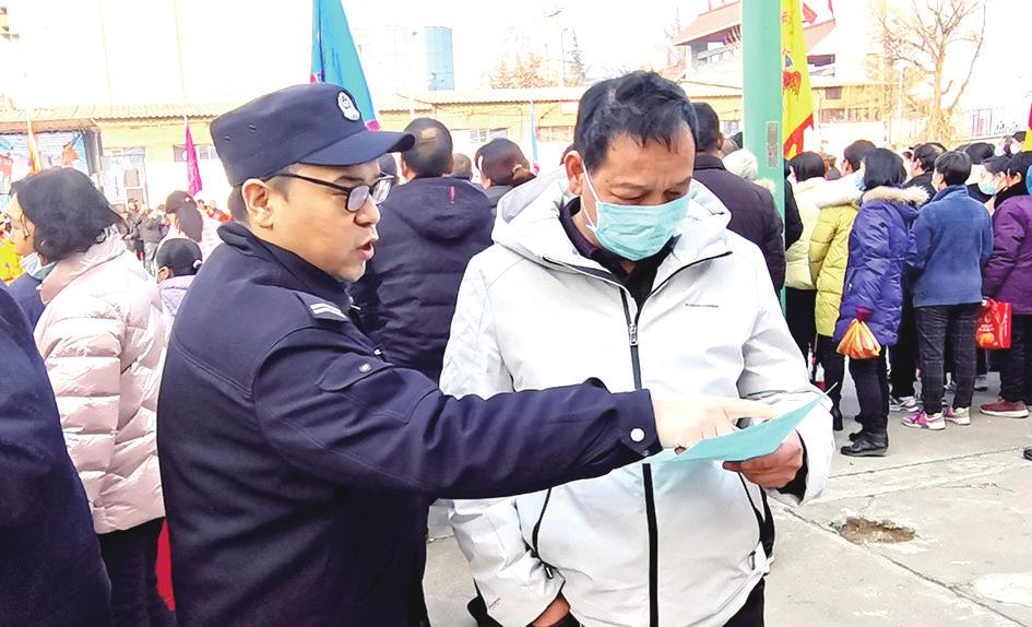 为有效预防和打击电信诈骗犯罪,2月11日,义马市公安局泰山路派出所民警、辅警走上街头,向辖区群众讲解网络诈骗案例,破解诈骗犯罪手段,帮助群众守好钱财。河南法制报记者马建刚特约记者李健摄影报道