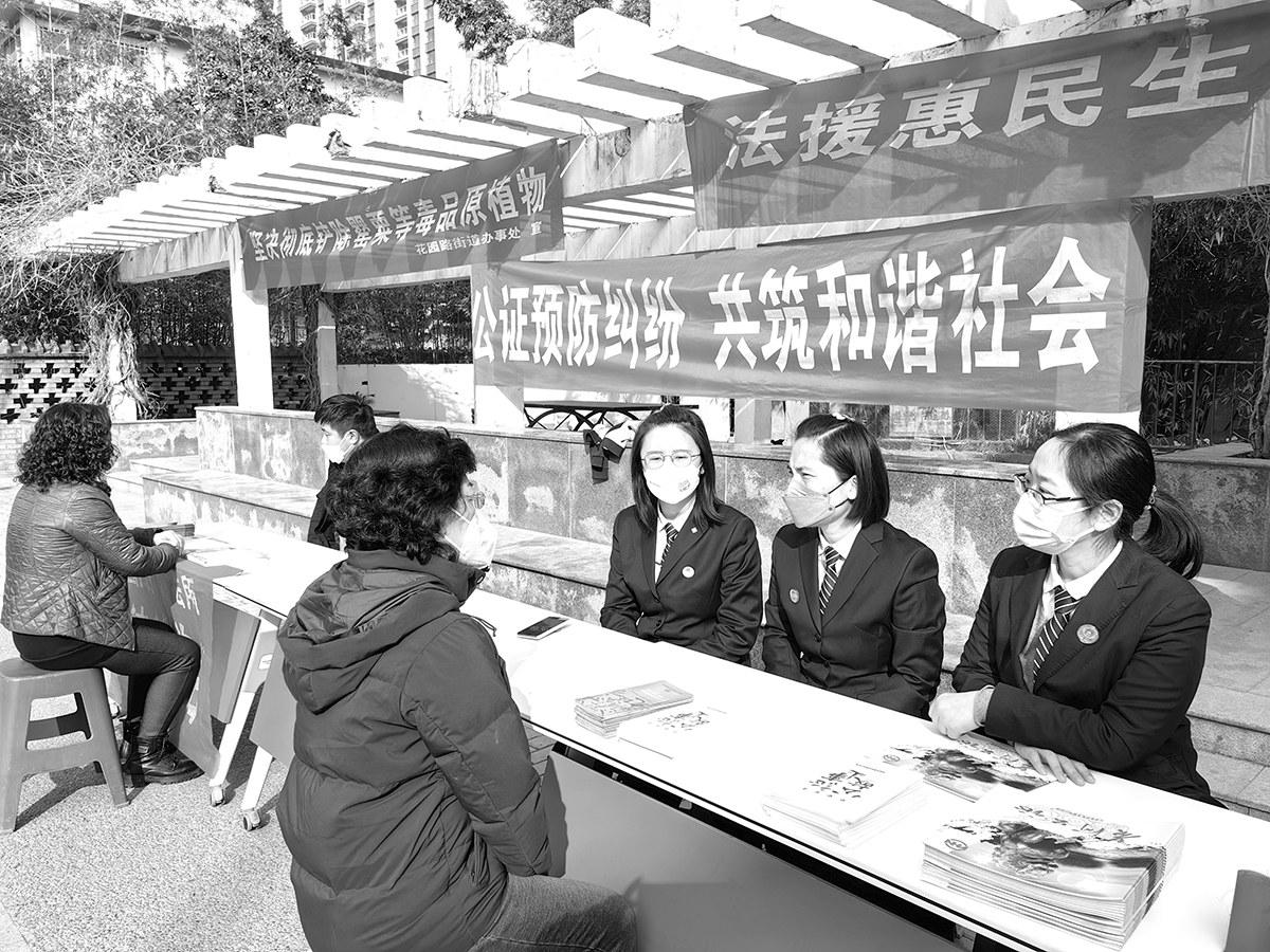近日,郑州市金水区司法局花园路司法所联合郑州市黄河公证处和河南天欣律师事务所,在甲院社区开展普法宣传活动。活动现场,工作人员向群众发放宣传资料并解答疑问。