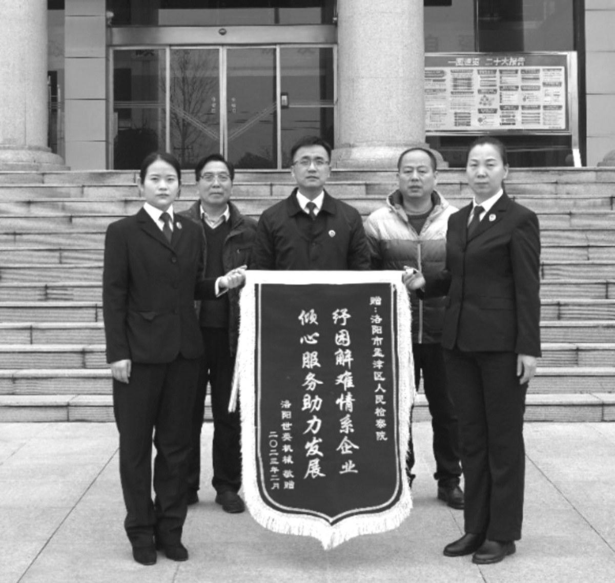 日前,洛阳世英机械制造有限公司负责人前往洛阳市孟津区检察院,将一面锦旗送给该院综合业务部干警,并感谢该院长期以来对企业的支持和帮助。
