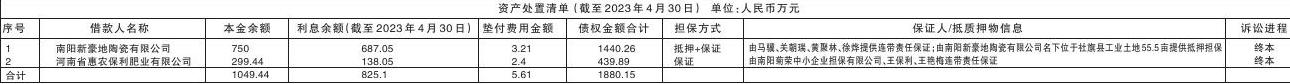 河南资产管理有限公司关于南阳新豪地陶瓷有限公司等2户债权的处置竞价公告(HNZCCJ-20230015) |