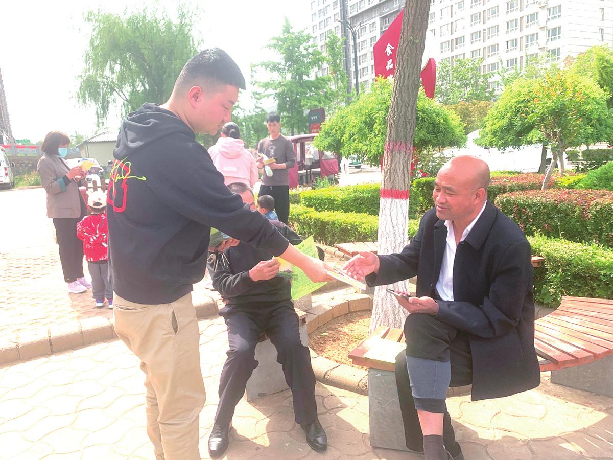 近日,义马市司法局千秋街道司法所普法志愿者走进银杏公园,开展民法典集中宣传活动,通过现场发放宪法、民法典法律知识读本和宣传单等方式,对民法典的主要内容及物业管理、财产继承、高空抛物等内容进行解读,增强群众的法律意识。 河南法制报记者马建刚通讯员 吉萌摄影报道