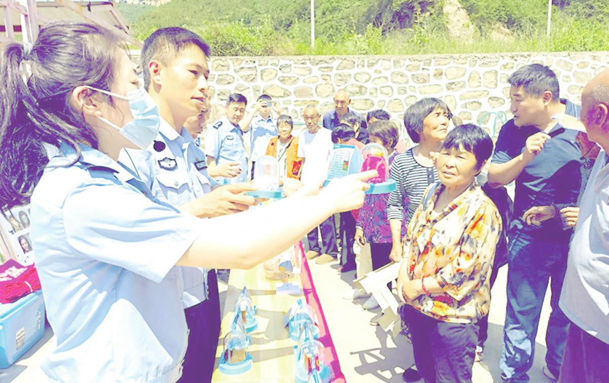 近日,安阳市强制隔离戒毒所“启明星”禁毒宣传队赴林州市合涧镇茶饭庄村,开展以“禁毒宣传进农村青山绿水健康行”为主题的禁毒宣传活动。“启明星”禁毒宣传队队员向村民讲解了毒品的种类与危害,告诫大家珍爱生命,远离毒品。河南法制报记者董景娅摄影报道