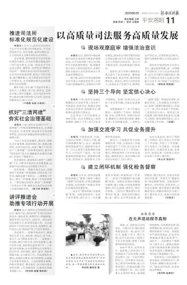 本报讯日前,洛阳市孟津区召开“三清两建”工作现场观摩暨推进会,区委副书记张田,区委常委、政法委书记朱宏斌等参加,会议由区委政法委常务副书记王国锋主持。 与会人员先后到董村、清河村、南陈社区实地观摩,现场听取汇报、查阅台账资料、互相交流讨论,全面了解3个村(社区)“三清两建”工作取得的成效,重点对“两类组织”及人民调解委员会规范化建设工作进行了观摩学习。 朱宏斌要求,要持续深入抓好“三清两建”工作,不断夯实基层社会治理基础,全面提升全区基层社会治理能力和水平。 张田强调,一要提升政治站位,各级领导干部要敢于较真碰硬,持续改进工作作风,锤炼过硬干部队伍。二要聚焦工作重点,强化工作措施,推动工作高标准落实。三要加强总结宣传,推动“三清两建”工作常态化开展,确保全区基层社会治理工作更加规范有效。(陈卫军李卓阳) |