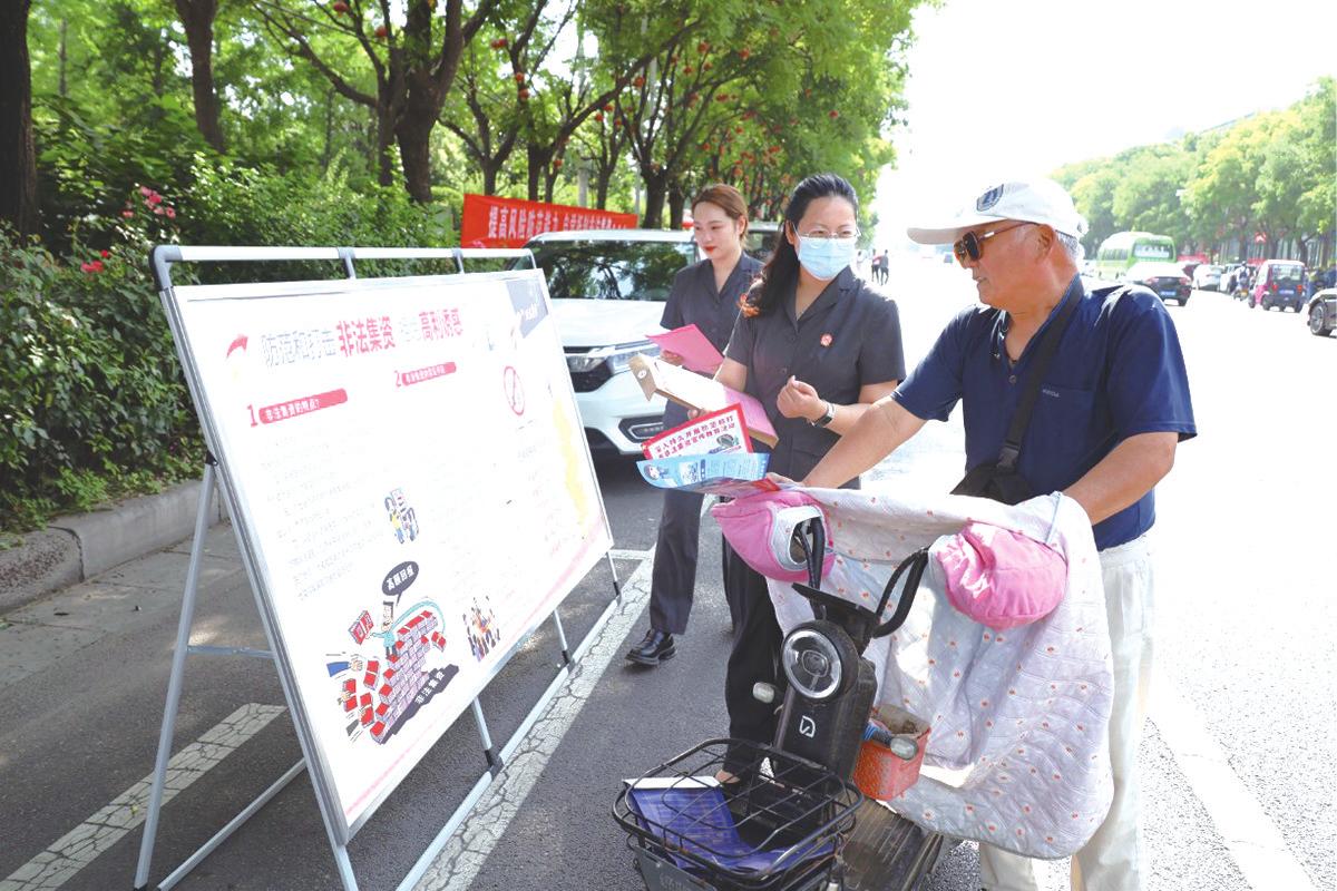 6月15日,鄢陵县法院干警走上街头,通过设置宣传展板、发放宣传页等方式,向群众介绍非法集资的特征、表现形式和常见手段,引导群众树立正确的投资理念,自觉远离和抵制非法集资,避免财产损失。