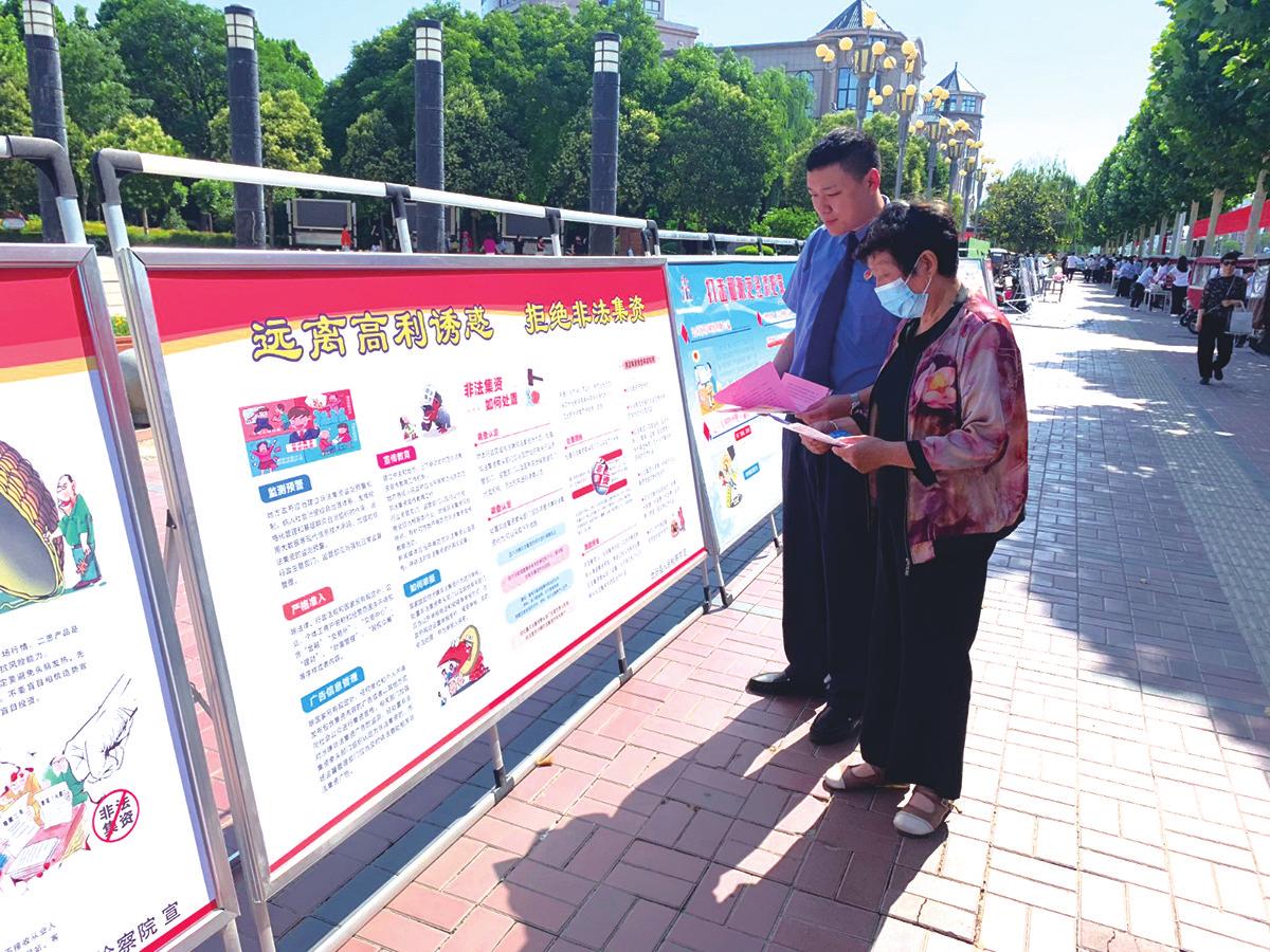 6月15日,武陟县检察院组织干警在县人民广场,开展防范非法集资集中宣传活动,通过设置宣传展板、悬挂条幅、发放宣传彩页等形式,向过往群众宣讲非法集资犯罪的相关知识,提升其辨别诈骗的能力。