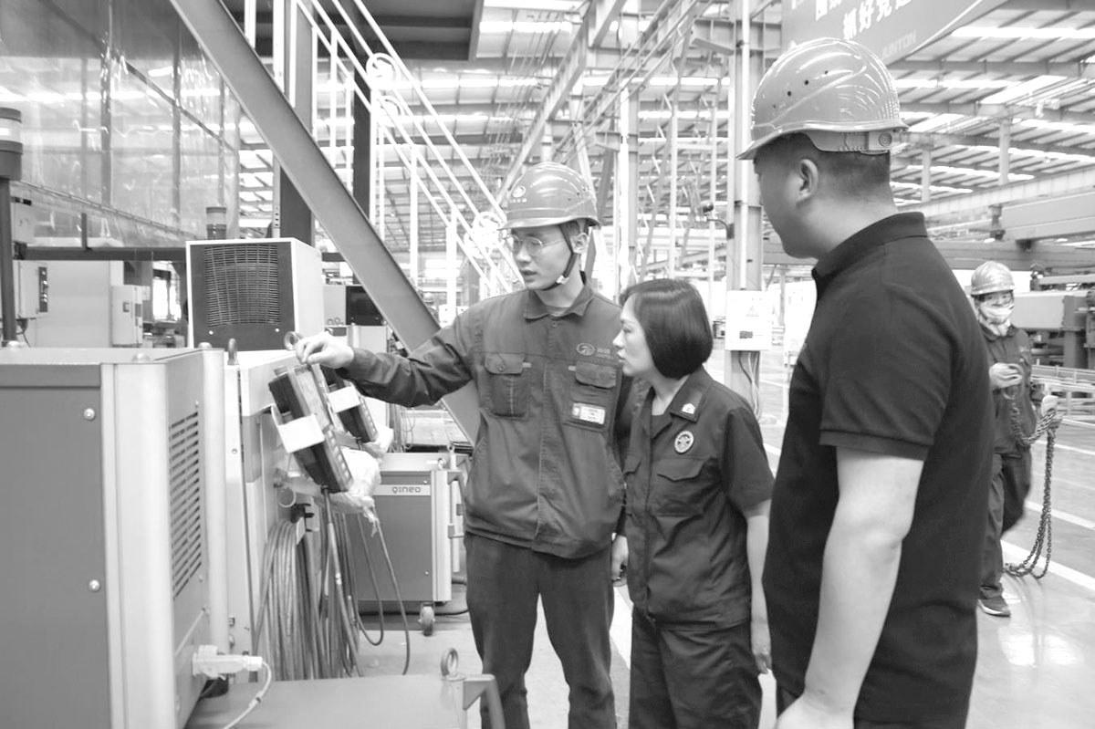 近日,三门峡市陕州区消防救援大队消防宣传人员与辖区骏通车辆有限公司车间管理人一起,巡查自动化生产设备安全状况,保证设备良好运行。河南法制报记者马建刚通讯员张平乐摄影报道